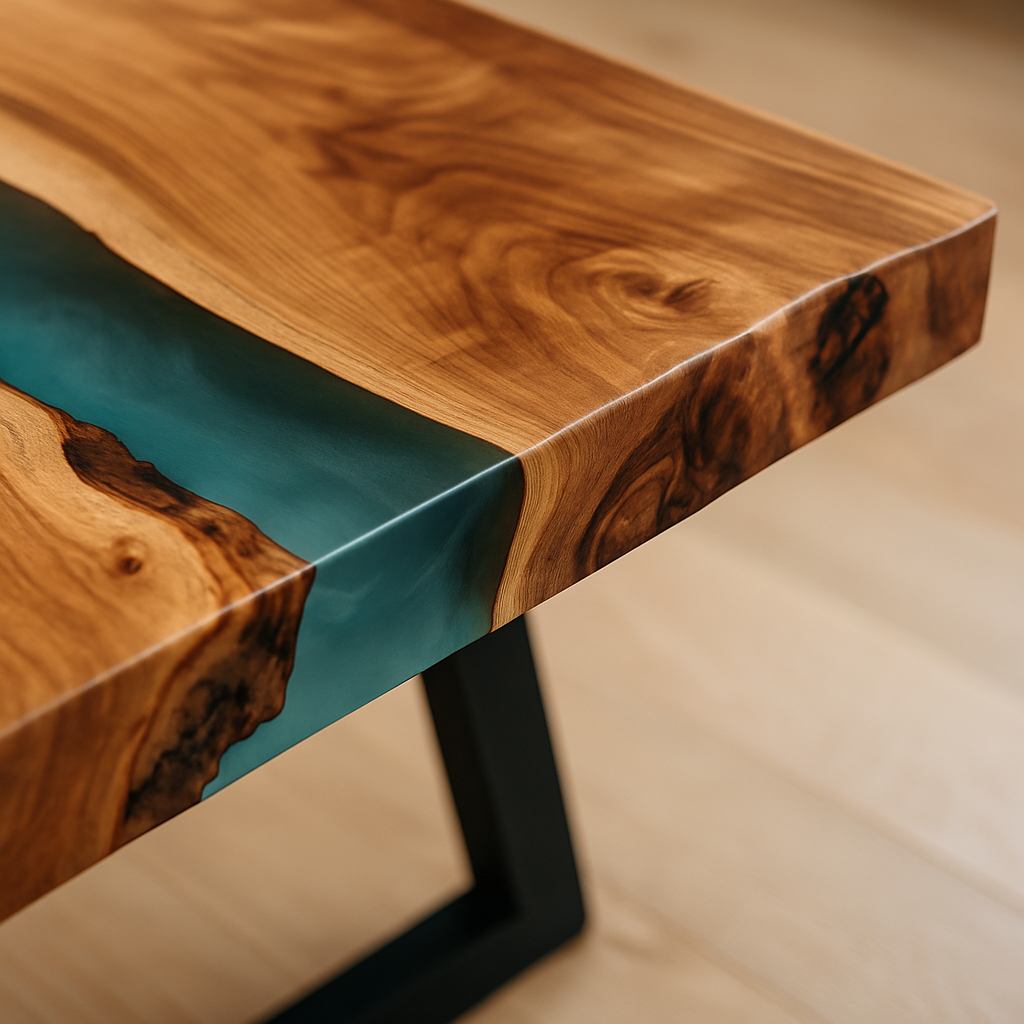 「樹映 -Juei-」は、木の温もりとレジンの透明感を融合させたテーブルやインテリア小物を手がけるブランドです。