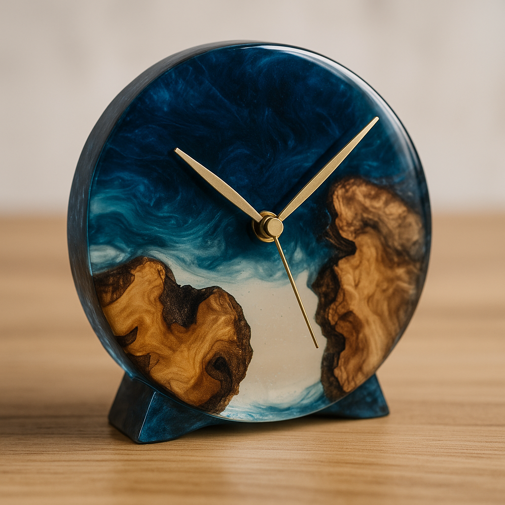 天然木のあたたかみと、深く澄んだレジンの流れが融合した、
